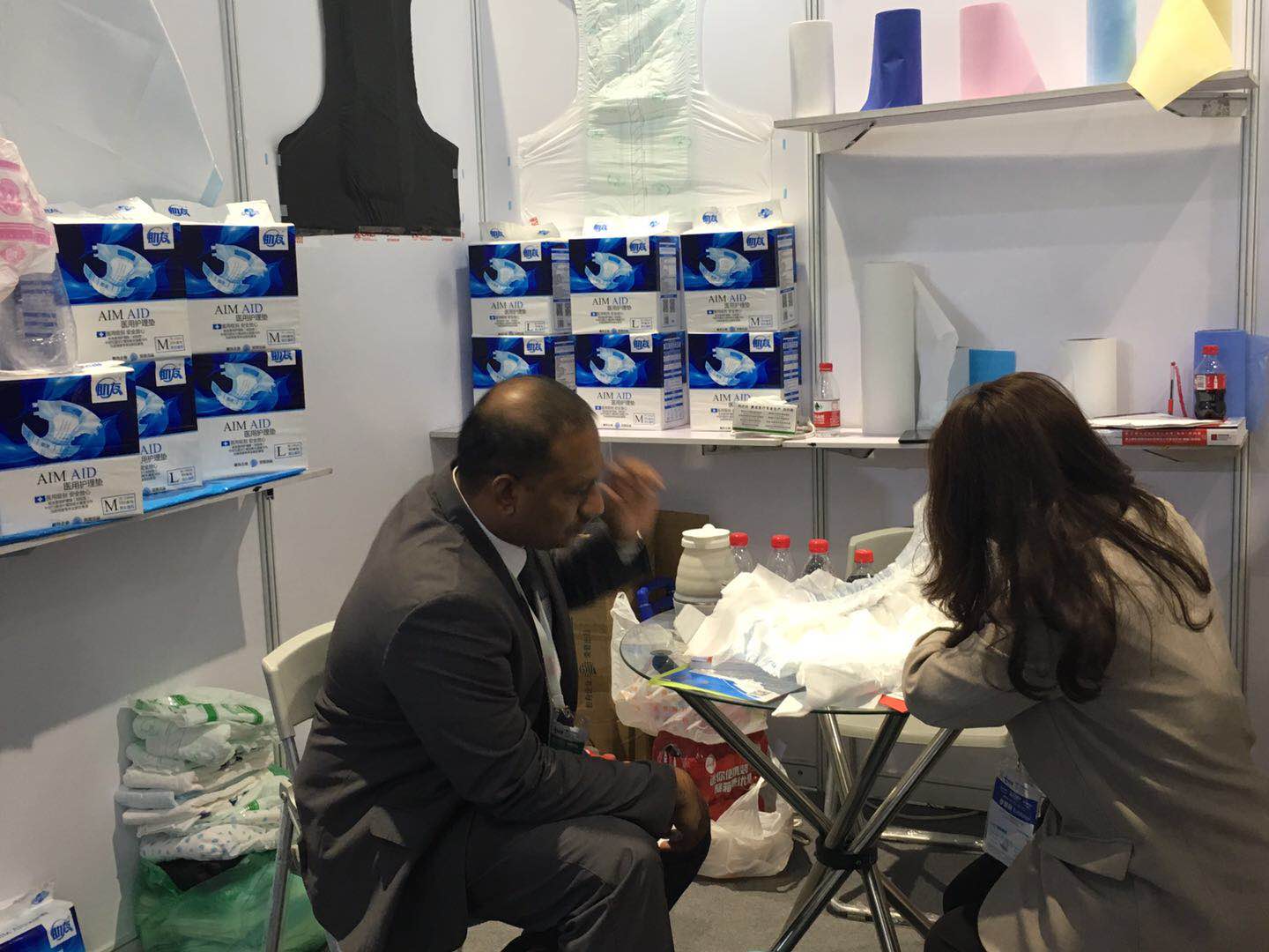 此次展會,我們主推會好品牌旗下的專利紙尿褲產品,采用了中空凹道和大耳帶S切等專利設計,吸引了眾多目光。凹道設計符合人體生理工程學,產品緊密貼合人體排尿部位,使尿液從底層反向吸收,增加30%的吸收速度。表層保持半干爽狀態,提升和延長了使用者的舒適度,有別于一代紙尿褲的表層吸收設計理念,由于液體在表層被吸收,使單位密度增大,影響液體下滲速度,從第一次開始使用后,使用者產生不適感,這是我們的凹道設計的優勢。